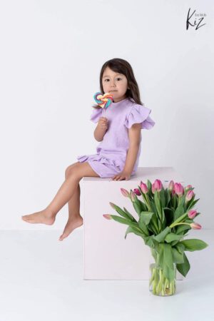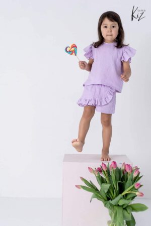 - Spódnico-spodenki (2 w 1), w pasie szeroka gumka, na przodzie ozdobna falbanka