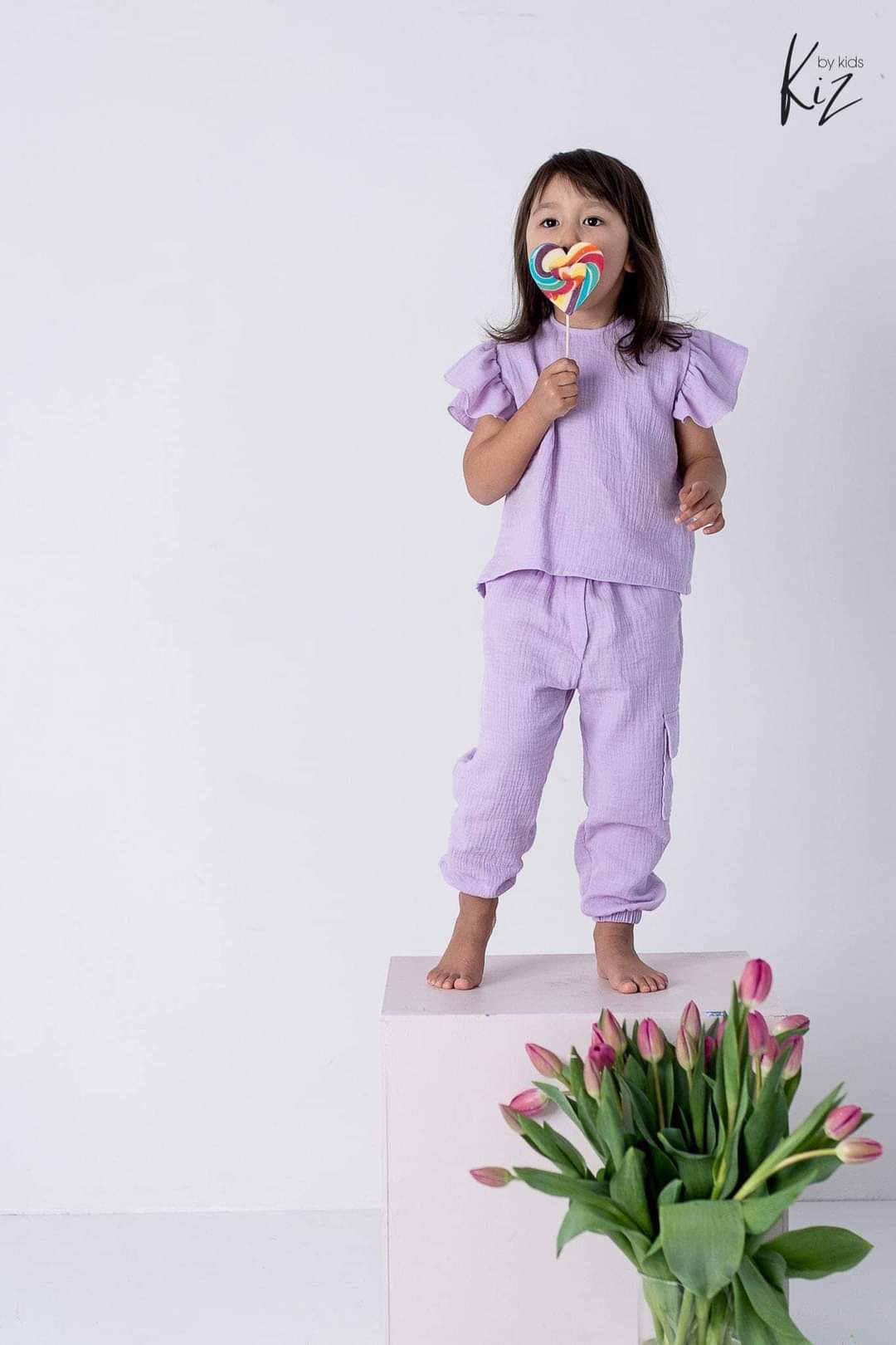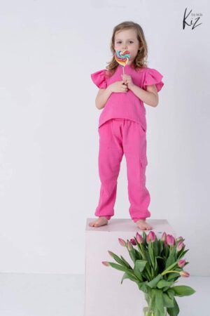 - Spodnie długie w pasie szeroka marszczona gumka. Kieszonki przód oraz jedna na nogawce, nogawki zakończone ściągaczem