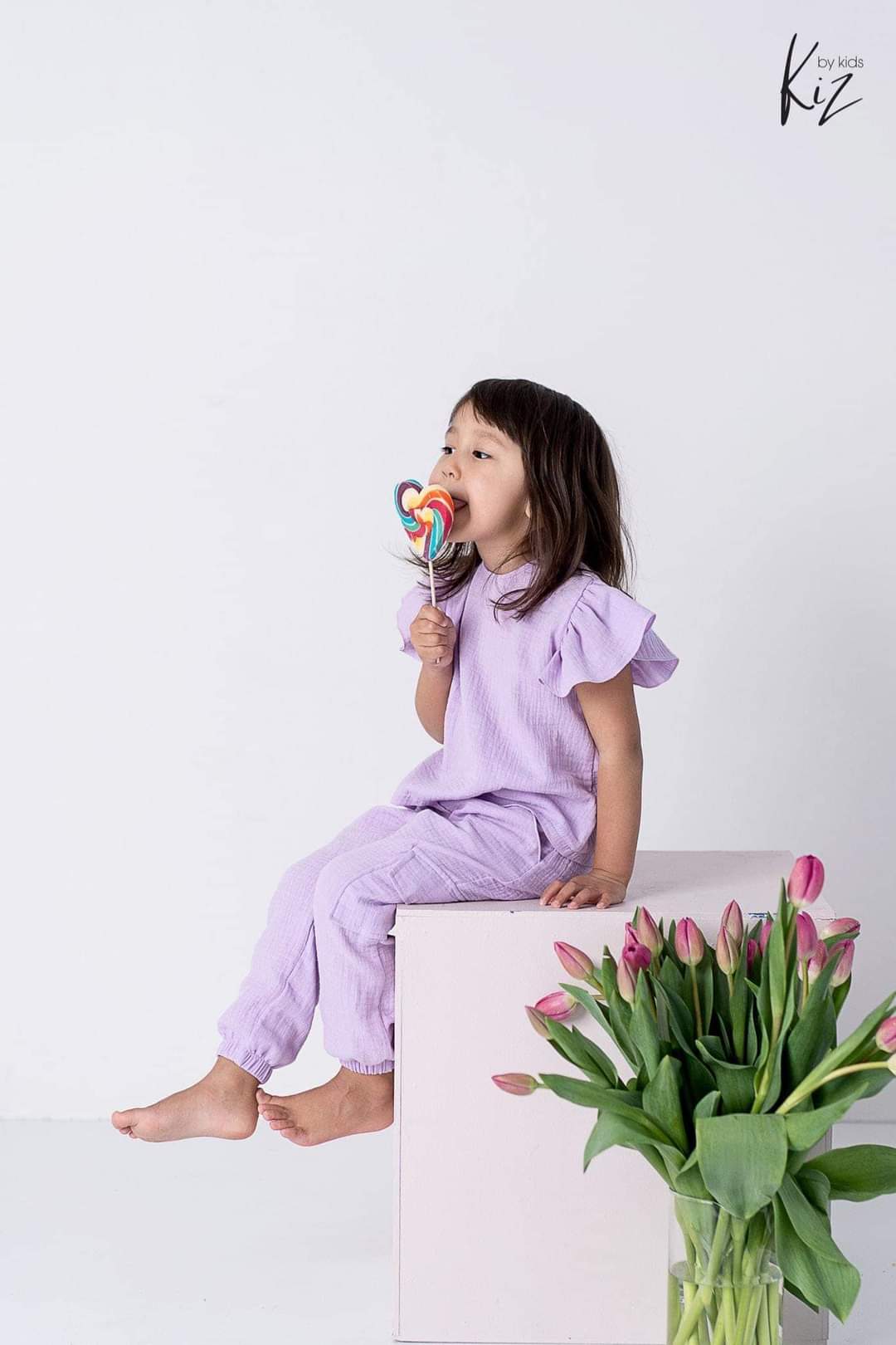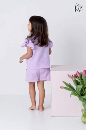 - Bluzka z motylkowym rękawkiem, z tyłu zapinana na guziczek